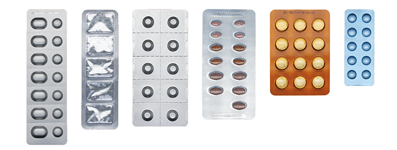 | 卷型包装材料 | PVC/PVDC/PET/PE/ACLAK | 单面涂胶铝箔(PTP)背封材料 |